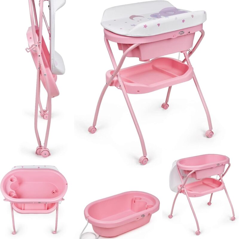 Baignoire et table à langer - pliable et compacte - imperméable et facile à plier - Rose - MS 30308