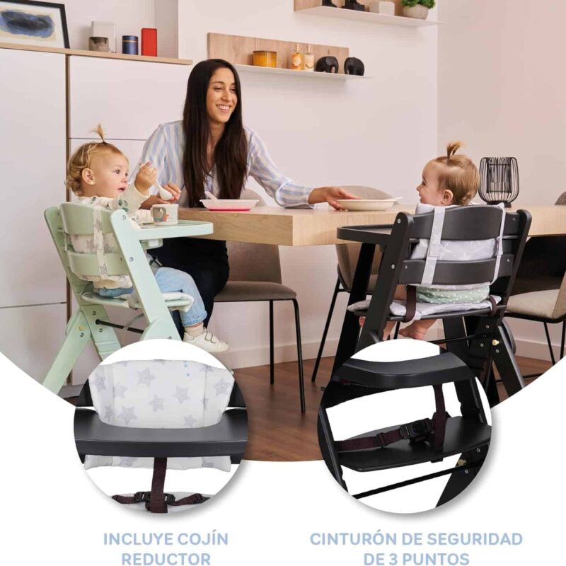 Chaise haute pliable en bois MS Évolutive réglable noir/gris