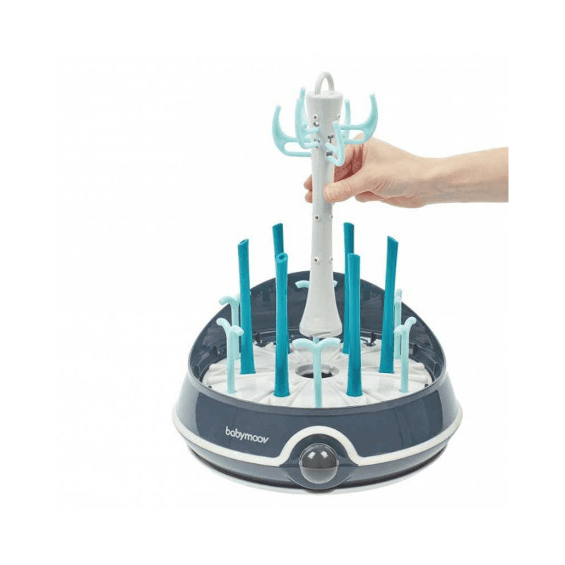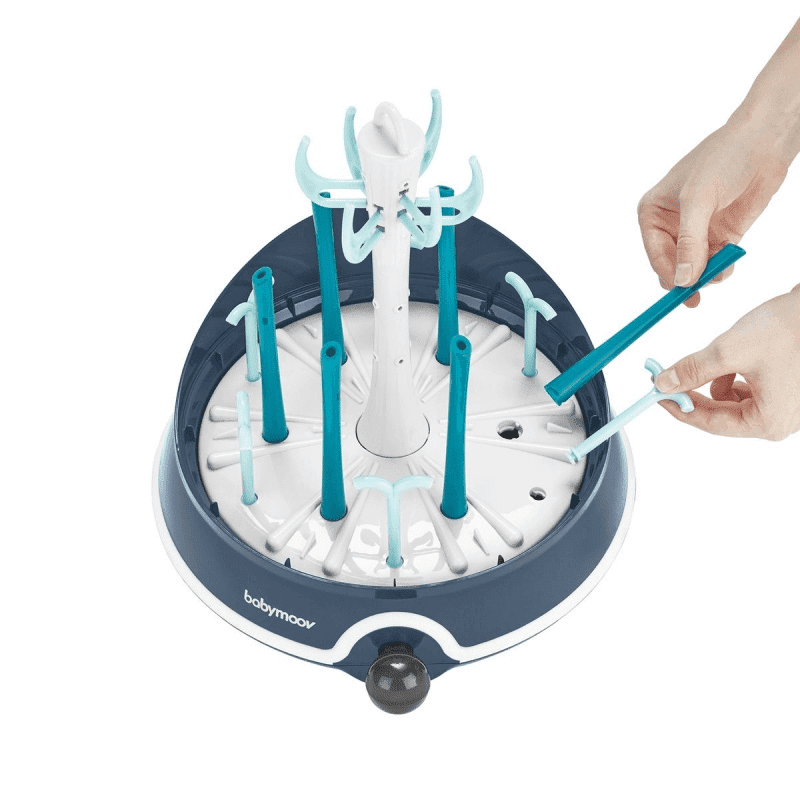 Les tiges facilement amovibles vous permettent de moduler le stérilisateur de Babymoov selon vos besoins. Il peut contenir jusqu’à 6 biberons mais également tétines, tire-lait et autres accessoires qui conviennent à la stérilisation. Le stérilisateur électrique Turbo Vapeur(+) se transforme en sèche–biberons. Il suffit de retirer le plateau du stérilisateur et le déposer où vous souhaitez.