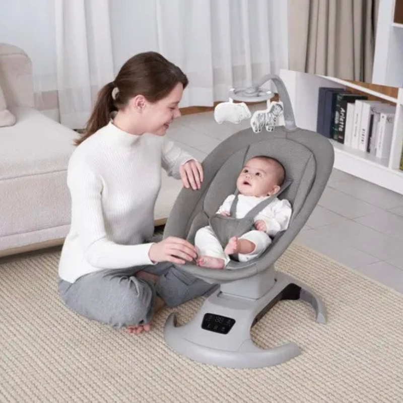 La balancelle bébé Mastela Lullaby Orbit gris foncé combine parfaitement technologie moderne et confort pour accompagner votre bébé dès la naissance jusqu’à 4 ans. Elle est idéale pour apaiser, divertir et offrir des moments de repos en toute sécurité.