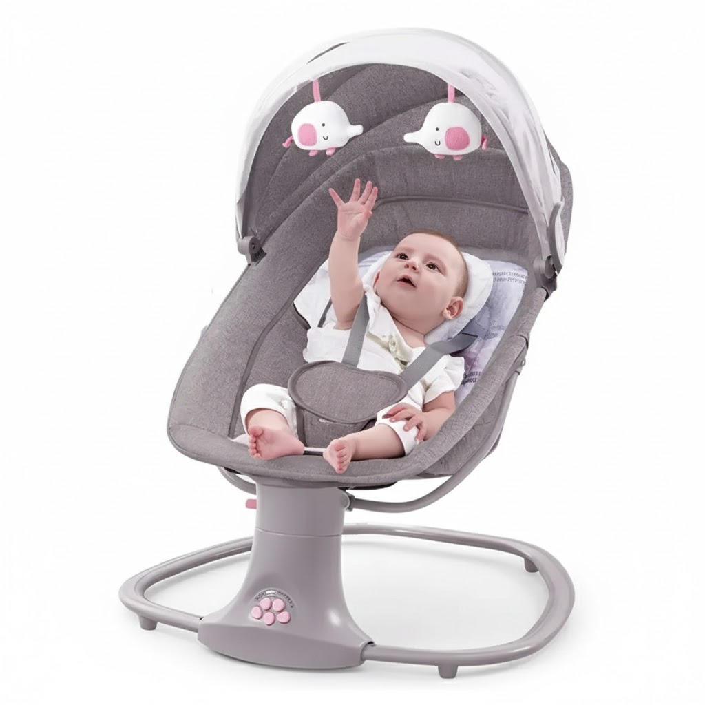 Balancelle Électrique Mastela 3 en 1 Musicale – Gris Clair Rose