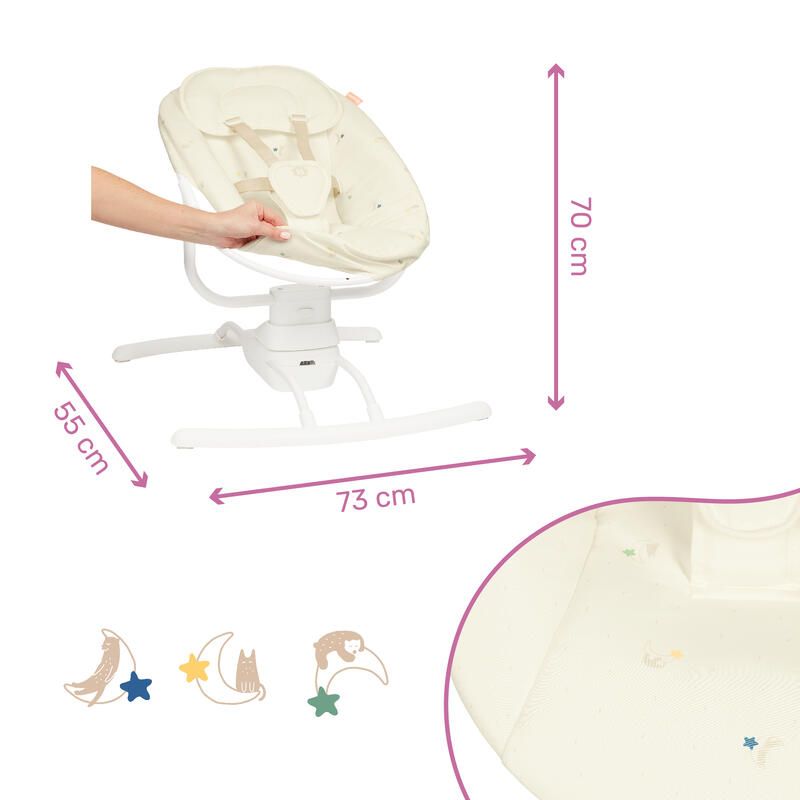 – Son cale tête et sa forme adaptée au dos des nouveau-nés rendent cette balancelle ultra confortable, idéale pour un moment de repos ou d’éveil.