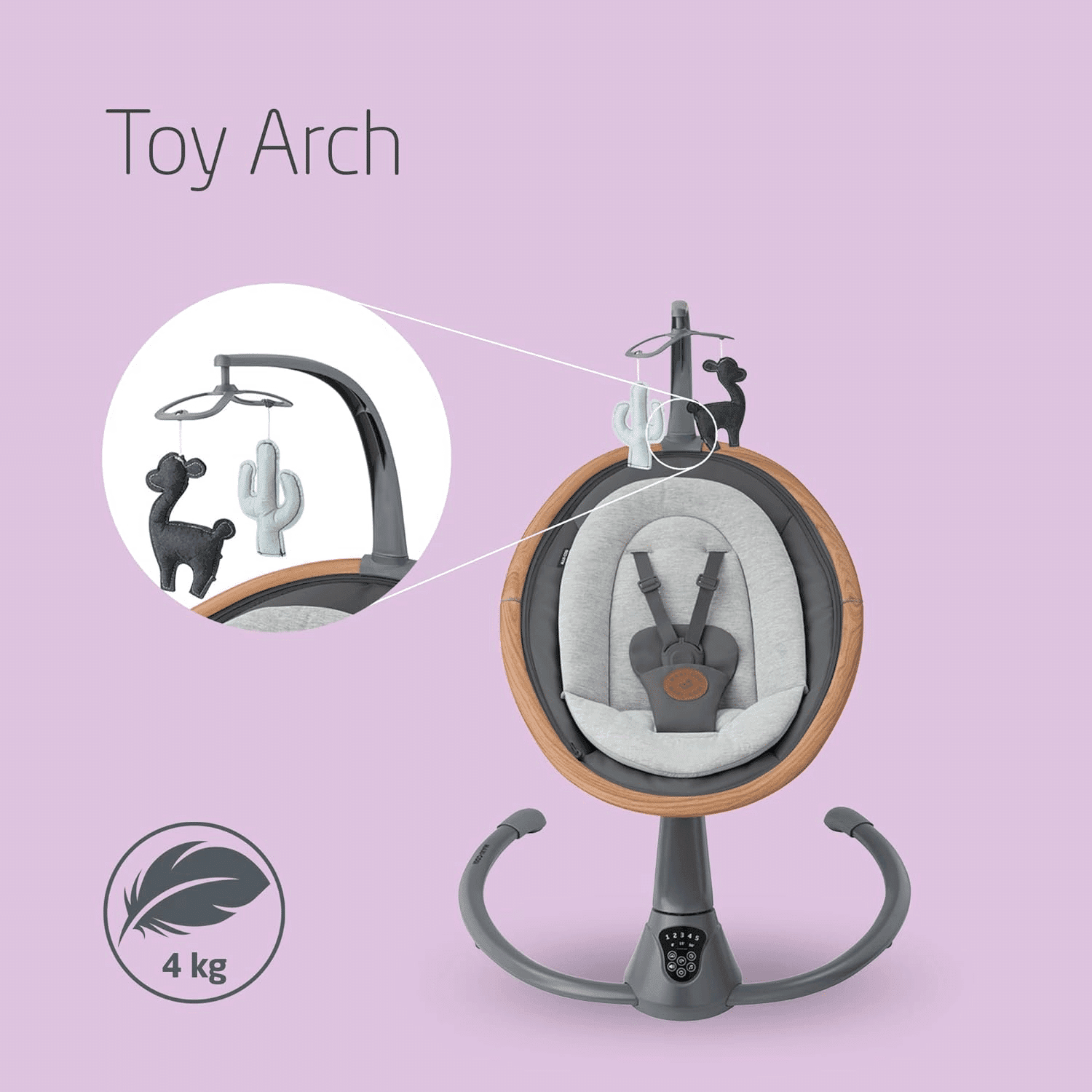 Cette balançoire est conçue avec un design élégant, ce qui permet de l’intégrer facilement dans n’importe quelle pièce. Elle dispose d’une fonction de balancement doux qui imite les mouvements naturels, apaisant ainsi bébé et favorisant son endormissement. De plus, la musique apaisante intégrée aide également à calmer bébé.