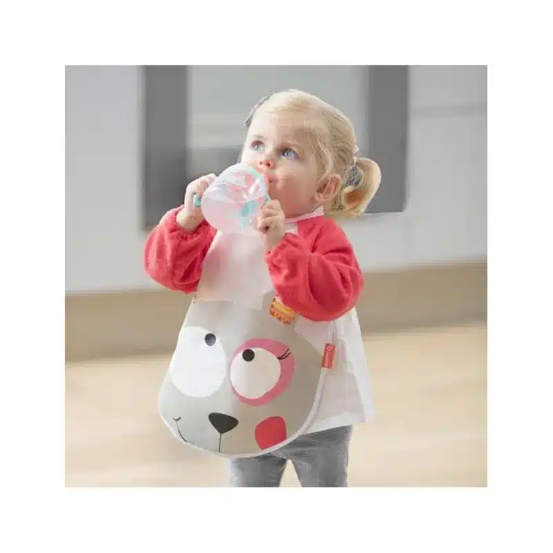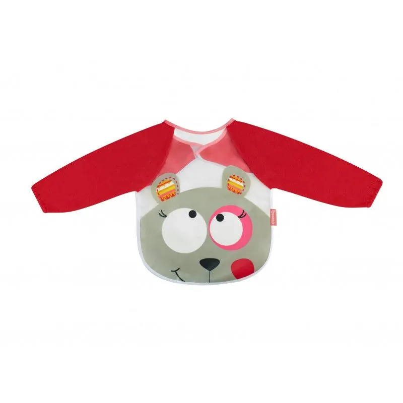 Bavoir bi-matière : manche en éponge et centre du bavoir en PVC