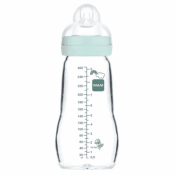 Le biberon Verre MAM de haute qualité est résistant à la chaleur, pour une utilisation pratique au quotidien.