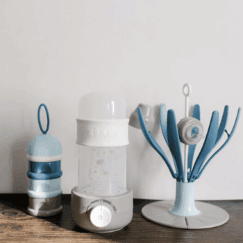 Chauffe biberon 2en1 : il chauffe le biberon (eau, lait maternel, lait croissance) et petits pots, et stérilise biberons et tétines.
