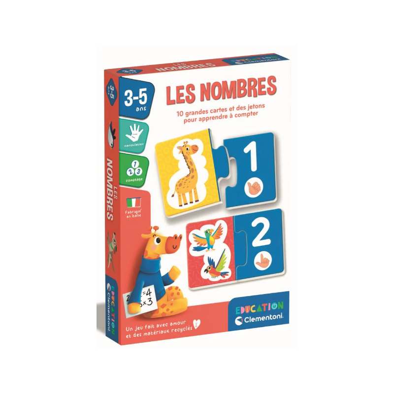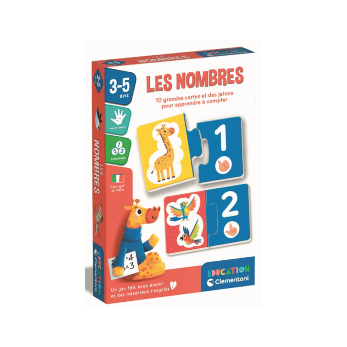 Le jeu “Les Nombres” de Clementoni est une activité éducative conçue pour accompagner les tout-petits dans la découverte des chiffres et du comptage. À travers des cartes illustrées et colorées, l’enfant apprend à reconnaître les chiffres, à les associer aux bonnes quantités et à effectuer ses premiers pas vers le calcul.