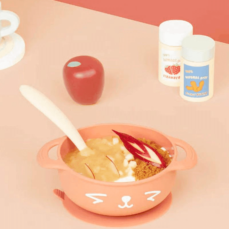- Kit repas bébé contenant un bol à ventouse et une cuillère