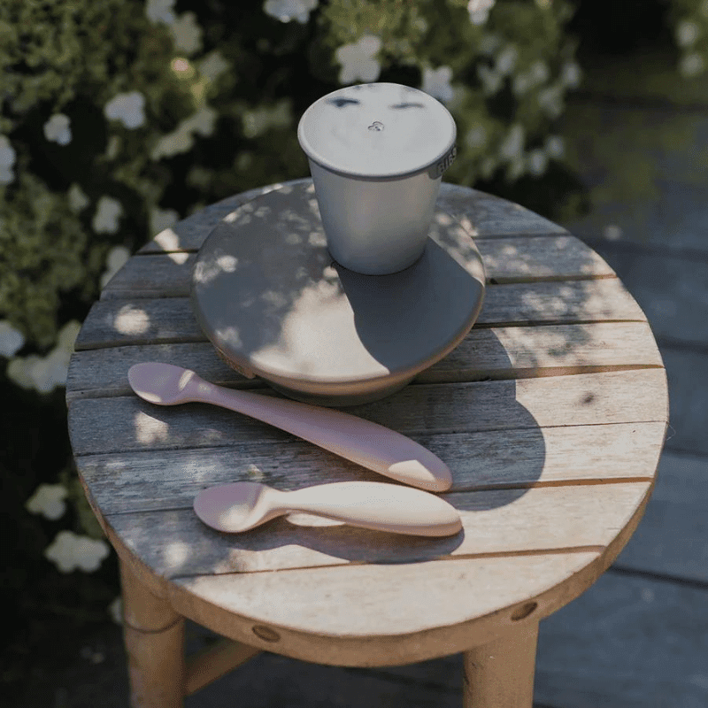 Le jeu de cuillères de BIBS comprend une petite cuillère pour l’enfant et une autre cuillère avec le manche plus long pour les parents. Le jeu de cuillères favorise les rapports sociaux des jeunes enfants lors des repas en commun.