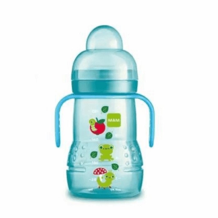 Antifuite et facile à tenir, le MAM Trainer+ représente le biberon idéal pour boire seul.