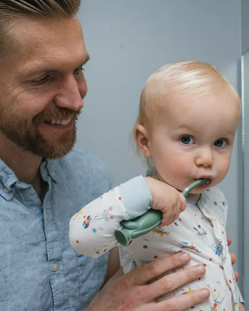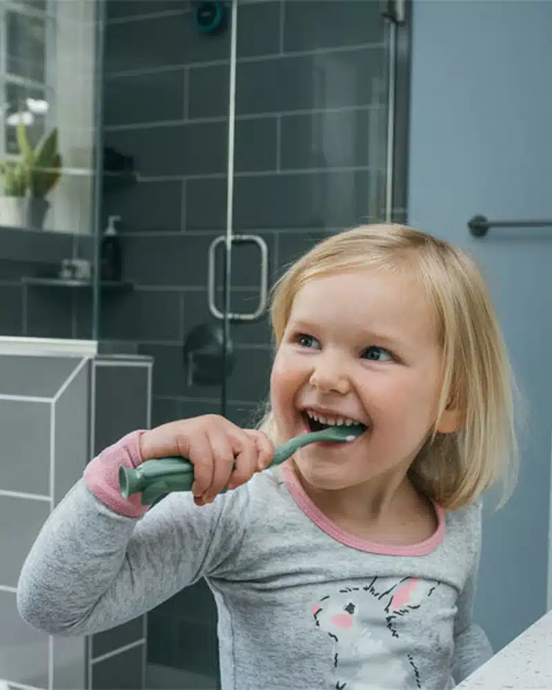 - La forme et le matériau de la brosse à dents dinosaure aident les petits doigts à maintenir une bonne prise pendant que vous les aidez à se brosser