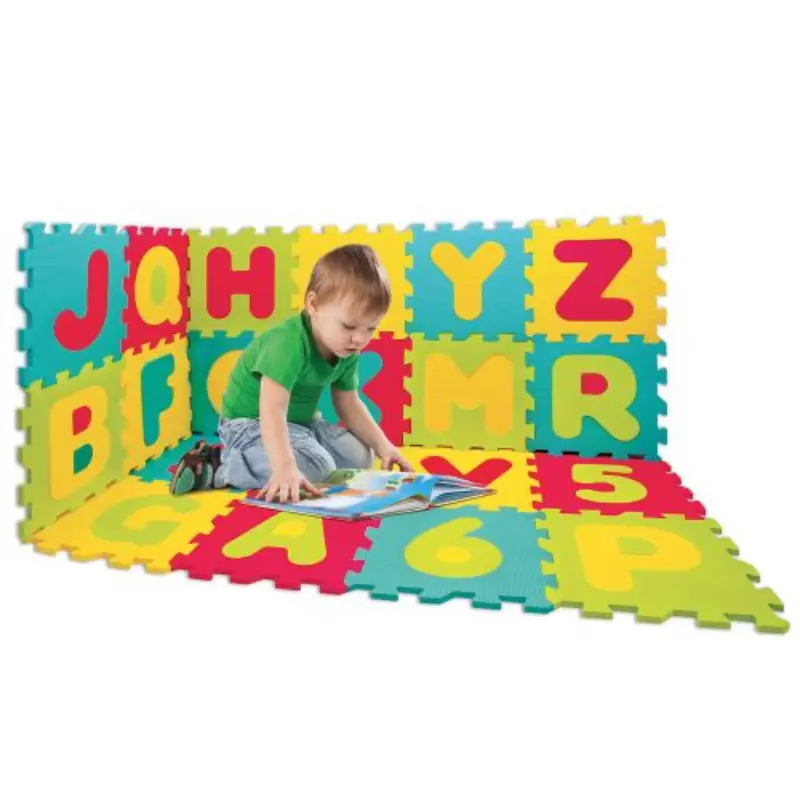 Tapis géant composé de 36 dalles pour réviser son alphabet et apprendre à compter. Il isole l’enfant du froid et amortit les chocs. C’est aussi un puzzle géant !