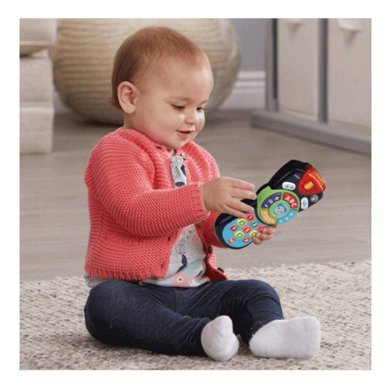 Avec Ma première télécommande parlante de VTech, votre enfant a lui aussi sa propre télécommande pour imiter papa et maman dès son premier âge.