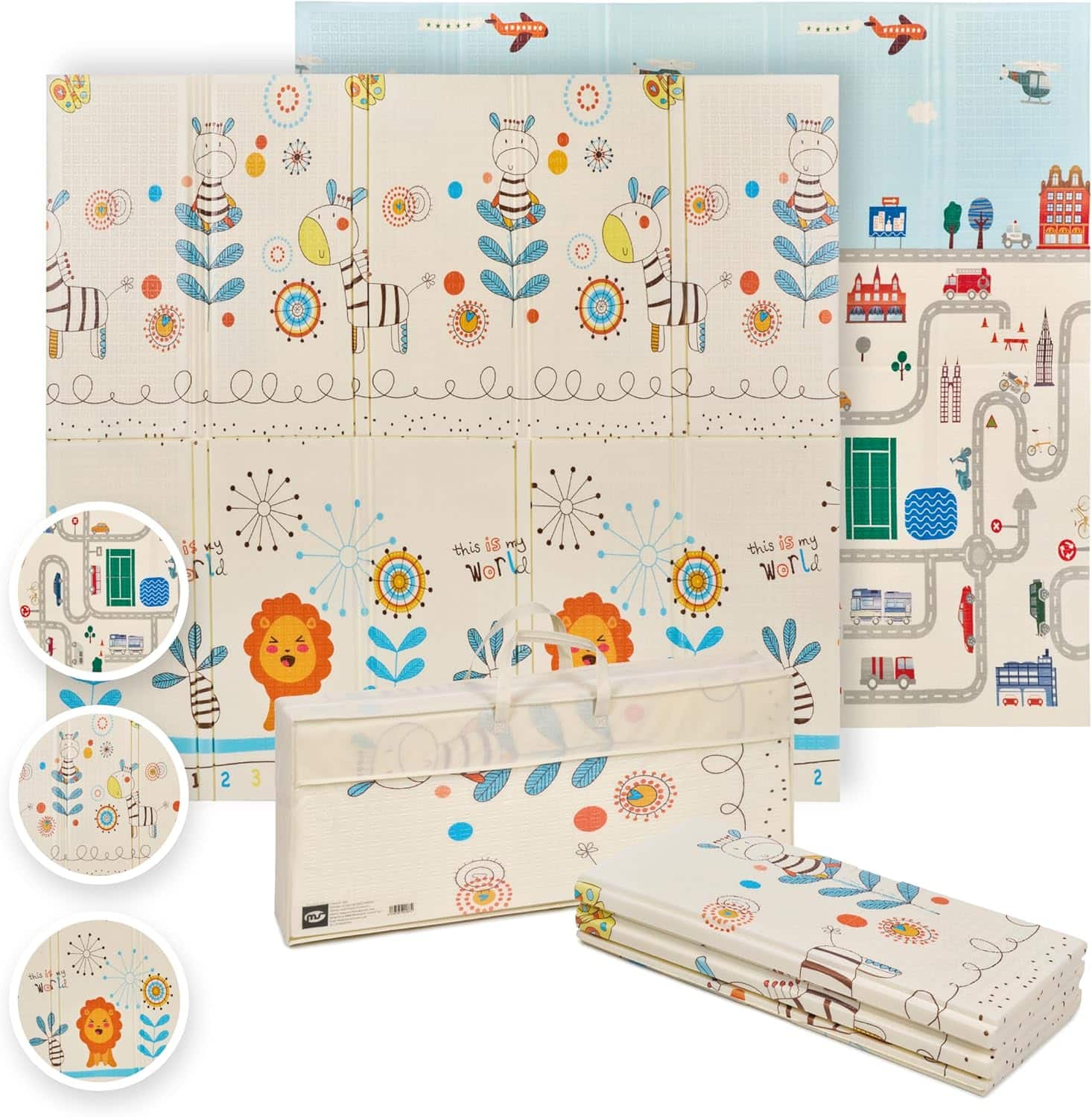 • Pliable et portable : ce tapis de jeu pliable pour bébé peu encombrant peut être plié jusqu’à 89 x 40 x 12 cm pour un rangement facile. Il est également léger pour voyager, pique-niquer dans le parc ou toute activité de plein air. Comprend un sac de transport