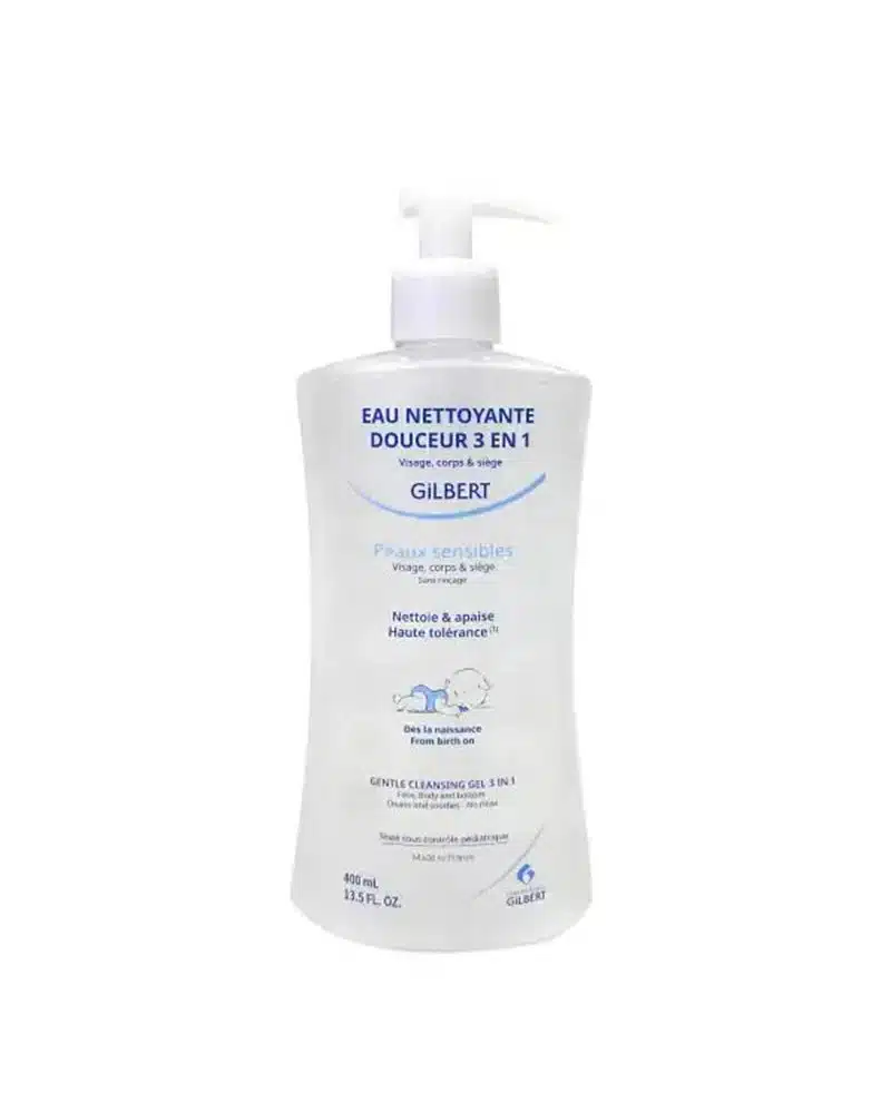 - Eau Nettoyante 3en1 400 ml : Pratique et efficace, cette eau nettoyante tout-en-un nettoie le visage, le corps et les fesses sans rinçage. Elle est enrichie en actifs apaisants pour un nettoyage doux et respectueux.