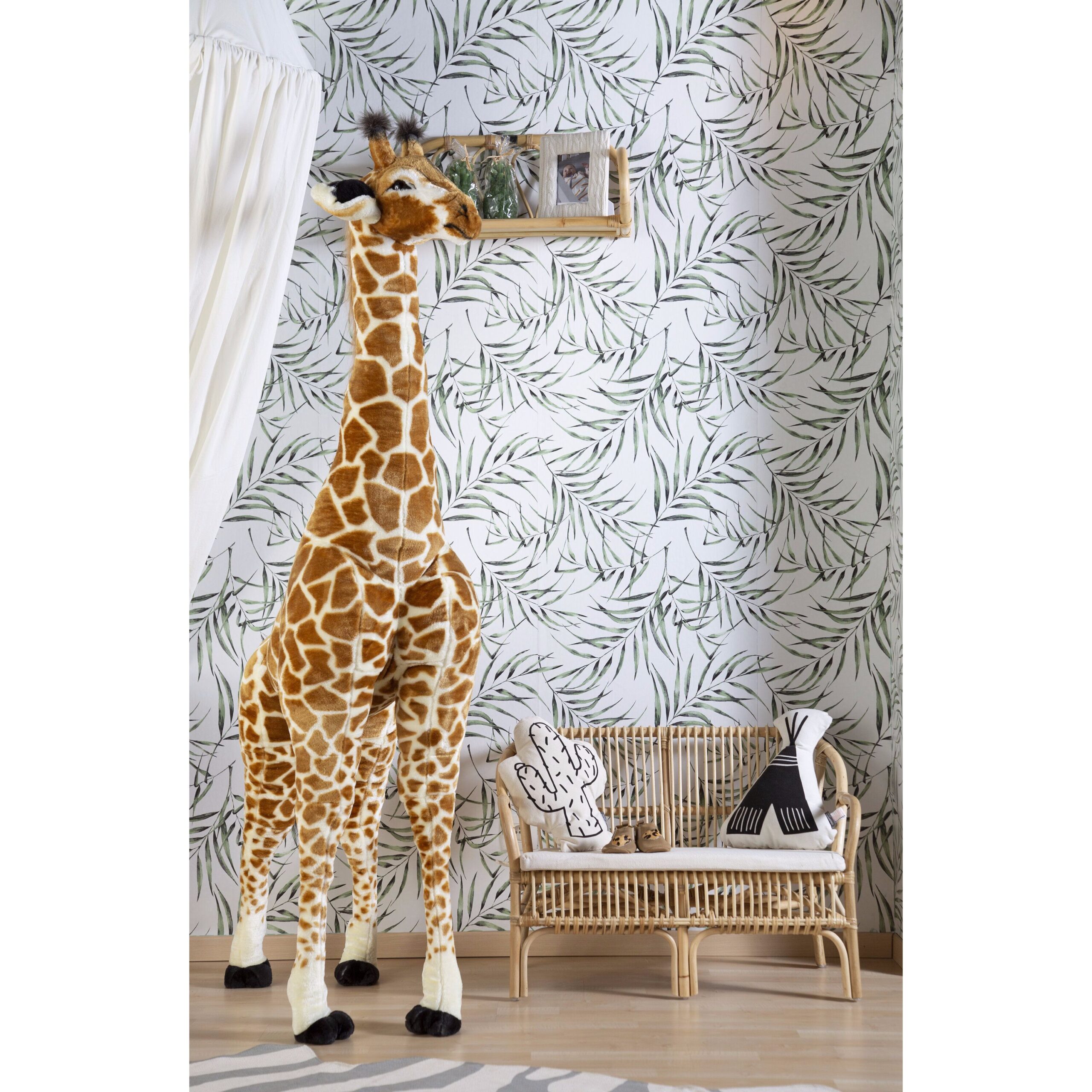 Les petits amoureux des animaux auront de grands yeux quand ils découvriront notre girafe géante! Cet animal en peluche géant deviendra sans aucun doute immédiatement le meilleur ami de votre tout-petit. La girafe mesure 180 cm et est donc très amusant à jouer avec, mais elle est aussi tout simplement belle dans une chambre d’enfant en tant que décoration. Une ambiance ludique de jungle est garantie!