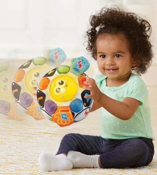 Ce ballon de foot électronique et joliment illustré l’accompagne dans ses premières découvertes et son éveil.