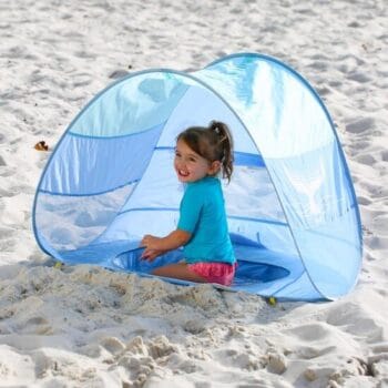 Cette piscine innovante combine abri solaire et point d’eau. Il suffit de creuser un petit trou dans le sable, de placer la piscine, d’ajouter un peu d’eau de mer ou claire… et bébé peut barboter en toute sécurité. Sa toile en polyester anti-UV 50+ protège la peau sensible des tout-petits.