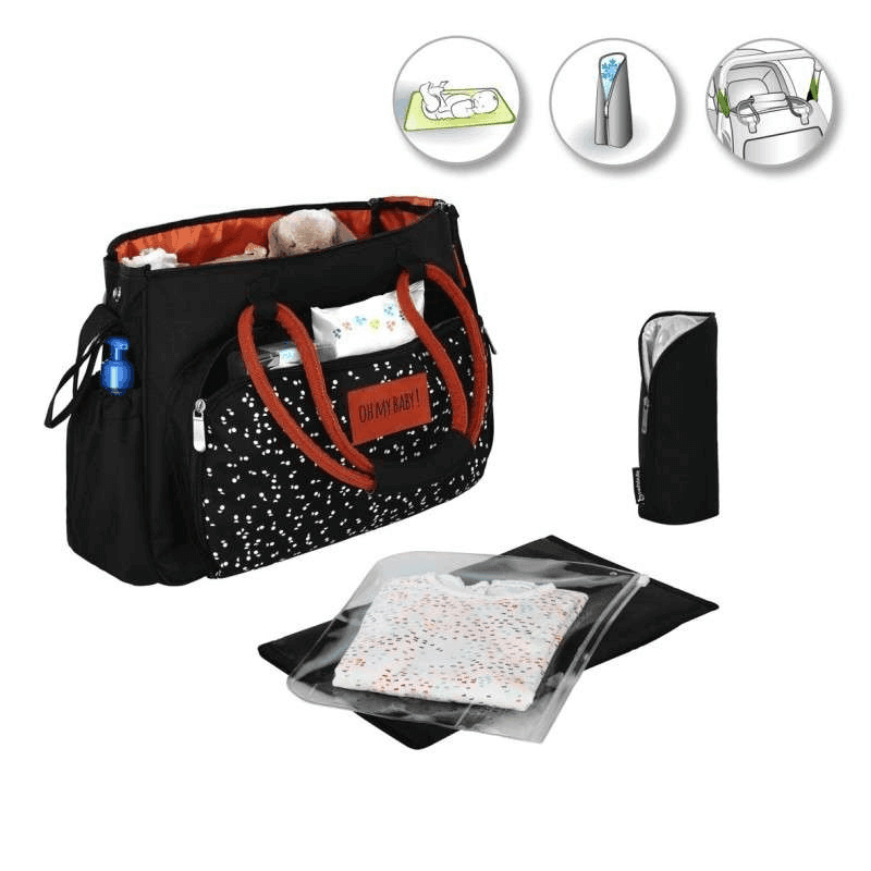 Très complet, le sac à langer BOHO  contient les 3 accessoires indispensables des sorties avec bébé : un plan à langer facile à nettoyer, une housse isotherme pour conserver biberon ou bouteille de 50cl et une grande poche intérieure avec rangements.