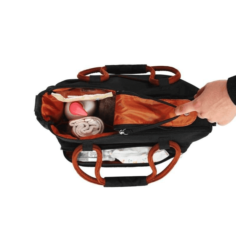 Cette grande ouverture vous permet de voir l’ensemble du contenu du sac d’un seul coup d’œil, super pratique quand on a bébé dans les bras !