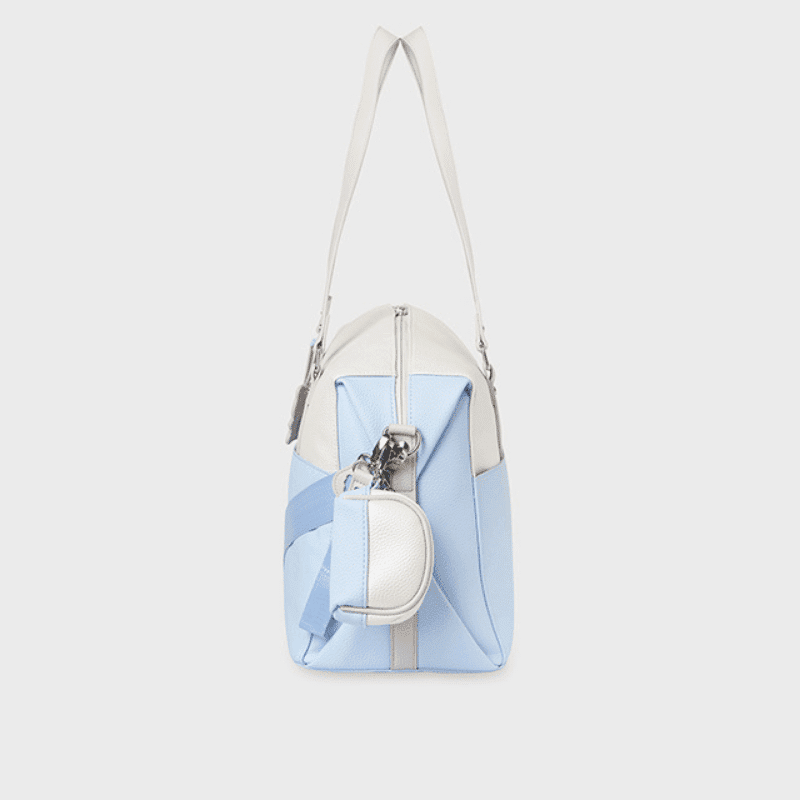 Sac à langer avec porte-tétine assorti. Il s’agit d’un ensemble complet utilisé pour transporter tout ce dont vous avez besoin pour prendre soin de votre bébé. Fermeture latérale avec zip. Extérieur en similicuir moderne. Il comprend des sangles à main, une bandoulière et une sangle de suspension ; les deux derniers sont détachables vous permettant de personnaliser votre look et d’ajouter votre propre style. Conception tricolore. Cela fait partie d’une ligne d’articles qui peuvent être combinés avec la collection Newborn. Dimensions : 35 cm x 40 cm x 20 cm. Support factice : 7,5 cm x 9,5 cm x 4,6 cm.