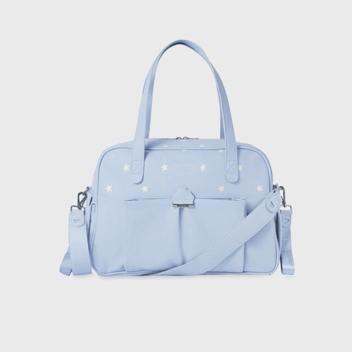 Sac de maternité spacieux conçu pour vous aider au quotidien et ranger tout ce dont vous avez besoin pour votre bébé. Fermeture zippée. Comprend des poignées de suspension détachables, ce qui facilite la fixation à la poussette de votre bébé. Imprimé étoiles. Dimensions 27x40x14cm.