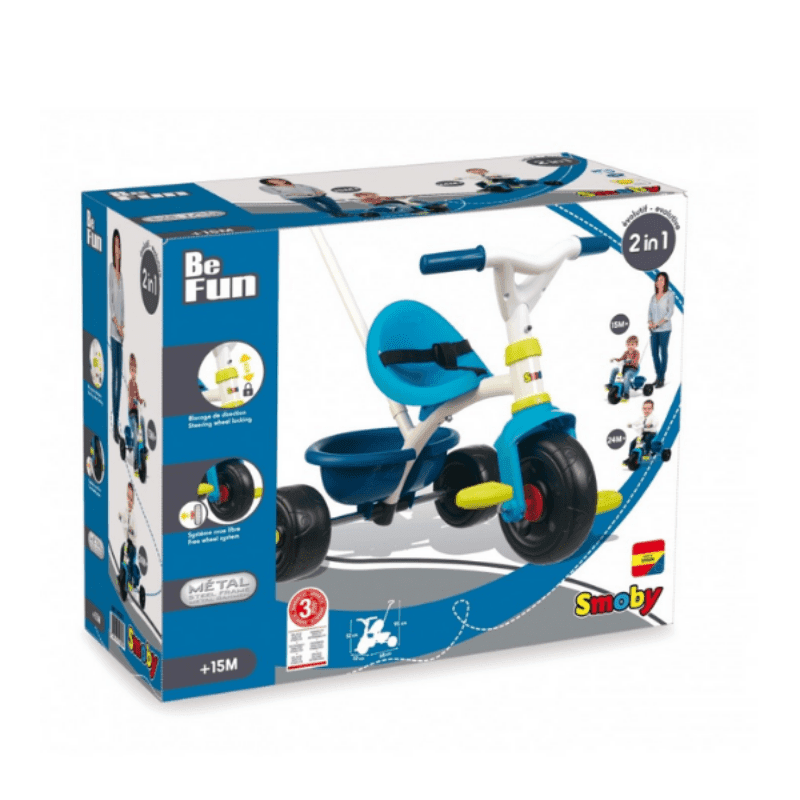 - Un tricycle coloré qui fera la joie de votre enfant de ses 15 mois a ses 3 ans et plus encore ! Le tricycle vous accompagnera dans toutes vos balades des les 15 mois de bébé. Grâce a la canne parentale réglable sur 3 positions (jusqu’à 95cms), le système de roue libre et le verrouillage de direction, vous arriverez facilement a diriger le tricycle sans que votre enfant n’interfère dans la direction. Votre petit sera confortablement installé dans son siège enveloppant et ergonomique, que vous pourrez régler sur 2 positions. Avec la ceinture de sécurité et le cadre en acier vous n’aurez aucun souci a vous faire quant a la sécurité de votre enfant ! Vous pourrez par la suite retirer la canne parentale, le système de roue libre et le verrouillage de direction pour laisser votre petit partir a l’aventure ! Il arrivera facilement a se déplacer seul grâce aux pédales antidérapantes. Les promenades seront agréables et amusantes ! En plus il pourra transporter tout ce qu’il trouve sur son passage grâce a la benne basculante située a l’arrière !