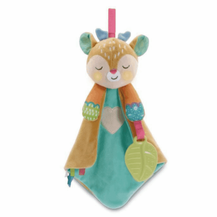 Le doudou Tifan possède des couleurs douces et différentes textures sur sa petite couverture (rubans, velours…) pour stimuler le toucher et la vue de bébé. Cette peluche toute douce est un véritable doudou à câliner qui enveloppe les bébés de tendresse.