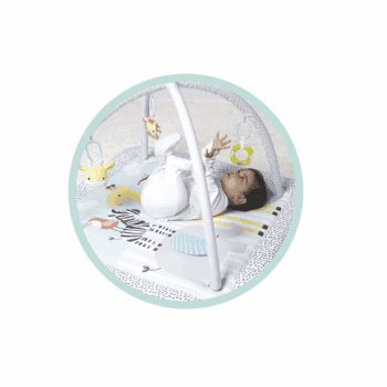 Peut être fixé sur le berceau, la poussette ou utilisé comme tapis de jeu, pour varier les expériences d’éveil.