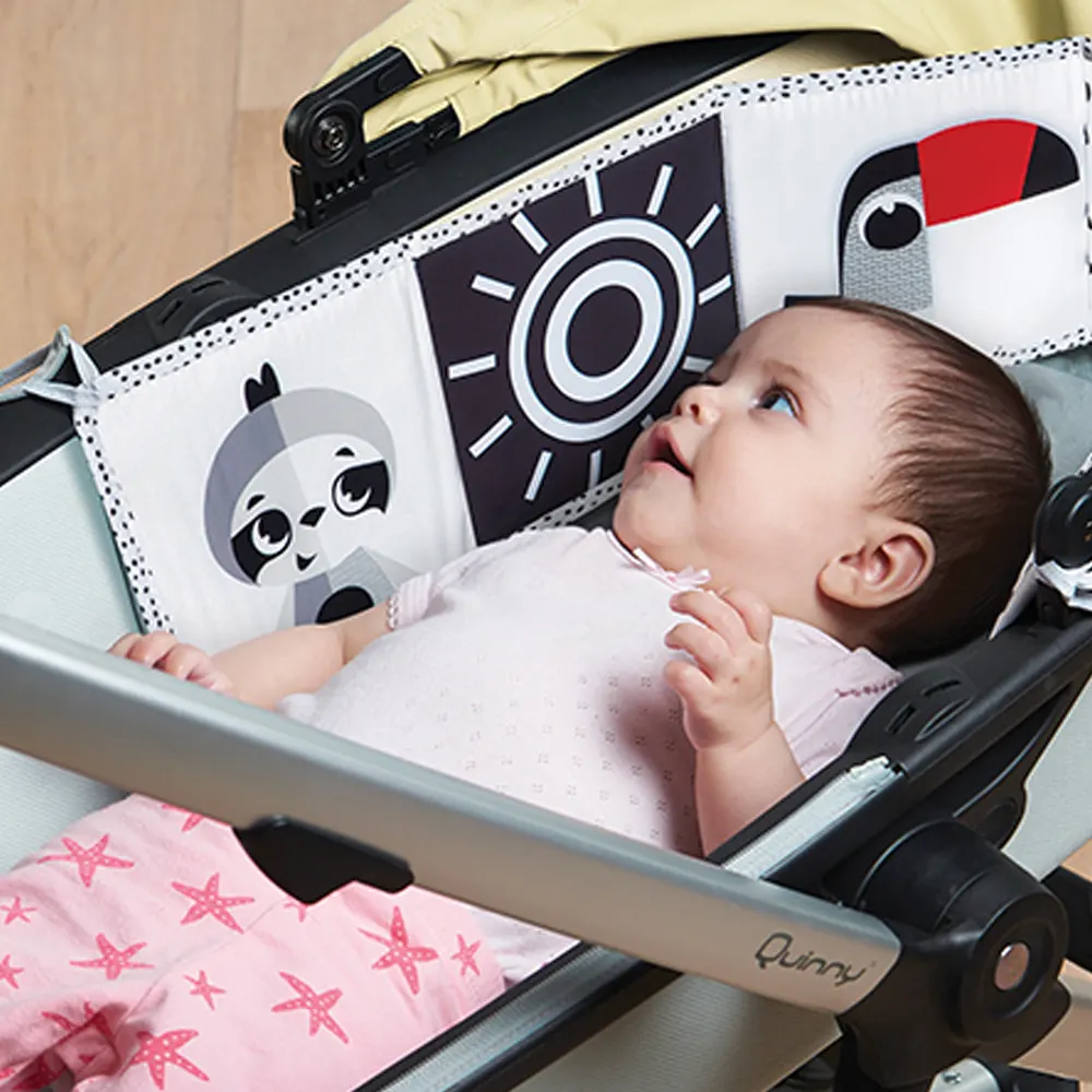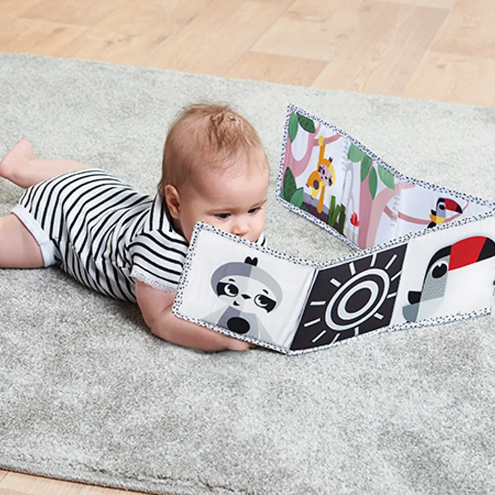Stimule la vision avec des illustrations aux contrastes doux adaptées aux tout-petits.