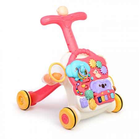Le centre de jeu est un nid confortable pour les plus petits. Si l’enfant ne marche pas encore, c’est un merveilleux trotteur qui comprend divers éléments – des boutons, des leviers, un téléphone, des effets sonores et lumineux. Si le bébé a déjà commencé à piétiner, il sert de soutien supplémentaire lors de la marche et le bébé se sentira plus confiant.